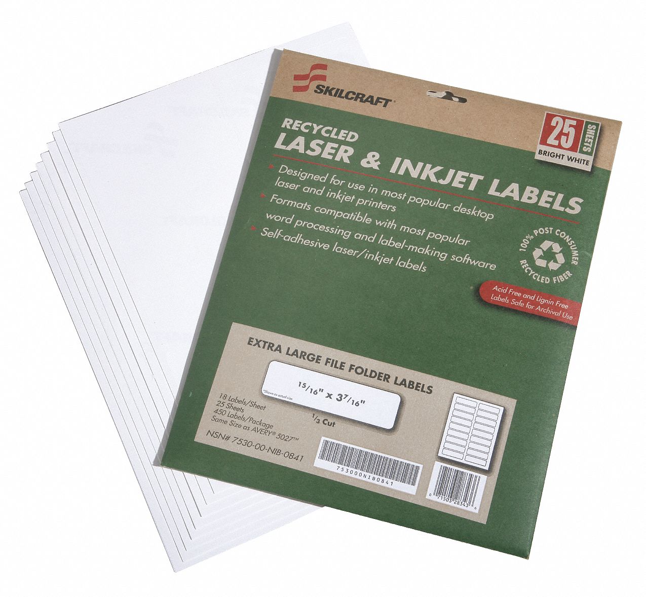ABILITY ONE Laser Printer Label 5,027 Avery Template , White, 15/16 in Label Ht, Paper, 450 PK